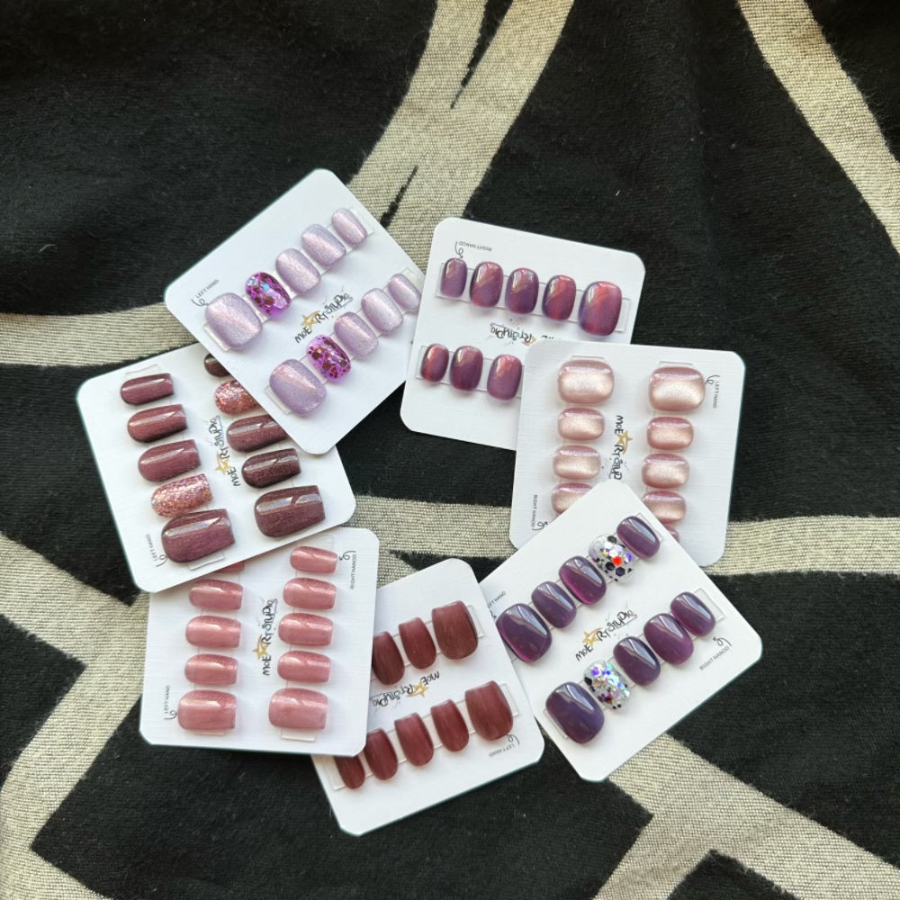 Cat Eye Press On Nails Fake Nails Short Square Nails Purple Series